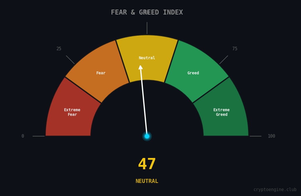 | Fear & Greed Index | 47 (Neutral) | — |